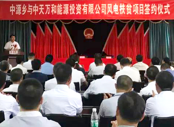 2017年8月10日,尊龙凯时集团与靖安县中源乡政府举行了《中天万和九犁风电场》扶贫项目签约仪式。尊龙凯时集团始终秉承着企业发展与促进社会经济建设相结合,积极参与扶贫济困活动,努力帮助地区的群众早日脱贫致富。