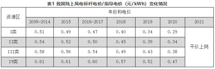 2019年5月21日,国家发改委官网发布了《国家发改委关于完善风电上网电价政策的通知》(发改价格〔2019〕882号),明确了2019、2020两年陆上风电和海上风电新核准项目的电价政策 ,将陆上、海上风电标杆上网电价均改为指导价,规定新核准的集中式陆上风电项目及海上风电项目全部通过竞争方式确定上网电价,不得高于项目所在资源区指导价。2019年I~Ⅳ类资源区新核准陆上风电指导价分别调整为每千瓦时0.34元、0.39元 、0.43元 、0.52元 ,2020年指导价分别调整为每千瓦时0.29元 、0.34元 、0.38元、0.47元;对于海上风电,2019年符合规划、纳入财政补贴年度规模管理的新核准近海风电指导价调整为每千瓦时0.8元,2020年调整为每千瓦时0.75元 ,指导价低于当地燃煤标杆电价(含脱硫、脱硝 、除尘)的地区 ,以燃煤标杆电价作为指导价 ,2021年新核准陆上风电项目全面实现平价上网,国家不再补贴。