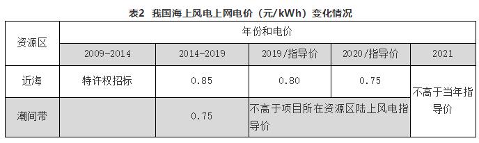 注:对2018年底前已核准的海上风电项目,如在2021年底前全部机组完成并网的,执行核准时的上网电价;2022年及以后全部机组完成并网的,执行并网年份的指导价。