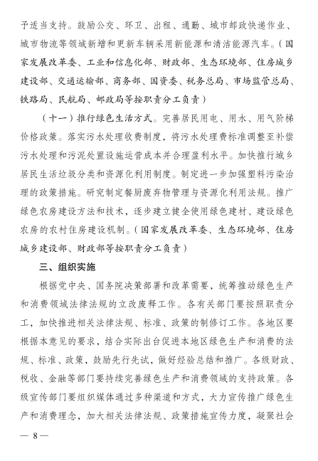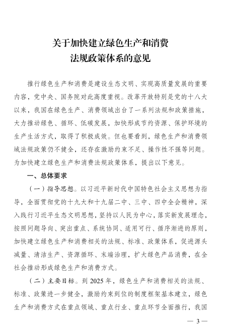 国家发展改革委 司法部印发《关于加快建立绿色生产和消费法规政策体系的意见》的通知