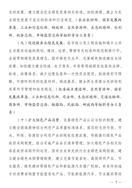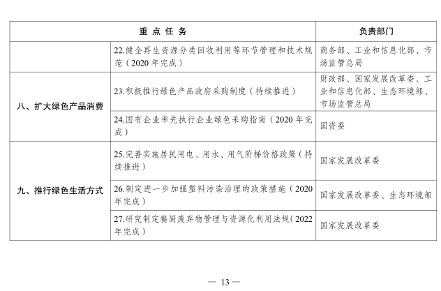 国家发改委、司法部联合印发《关于加快建立绿色生产和消费法规政策体系的意见》的通知,通知中称,到 2025 年,绿色生产和消费相关的法规、 标准、政策进一步健全,激励约束到位的制度框架基本建立,绿色 生产和消费方式在重点领域、重点行业、重点环节全面推行,我国绿色发展水平实现总体提升。