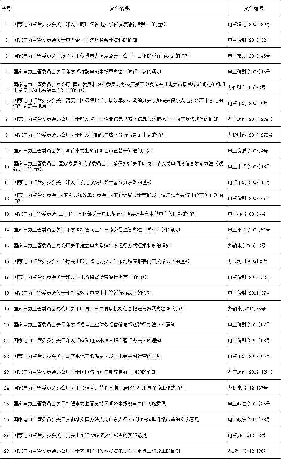 为贯彻落实党中央国务院关于加强法治政府建设和推进简政放权、放管结合、优化服务的要求,营造良好营商环境,国家能源局对规范性文件进行了清理,决定废止原国家电监会印发的规范性文件28件。